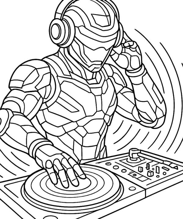 A futuristic DJ-idol fights digital demons using sound waves and rhythm. The neon turntables and cyberpunk headset create endless options for lighting effects. Electric blues, glowing greens, and magenta streaks will make the page pulse with energy. Perfect for fans who love technology, music, and sci-fi fusion art.